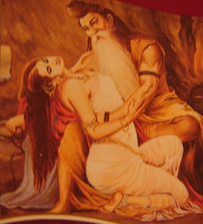 In ancient India, there was a great sage named Visvamrita who was doing great penance and austerities, after a life as a king. This was making Indra, the head of the lesser gods nervous, so he decided to send of the most beautiful apsara to tempt him. Indeed, she was so beautiful and enchanting that she was able to pull Vishvamrita away from his yogic vision and they became lovers. Eventually, Menaka, grows to have true love for him, no longer wanting to be a temptress and the cause of his downfall and they separate, each back to a life of austerities.